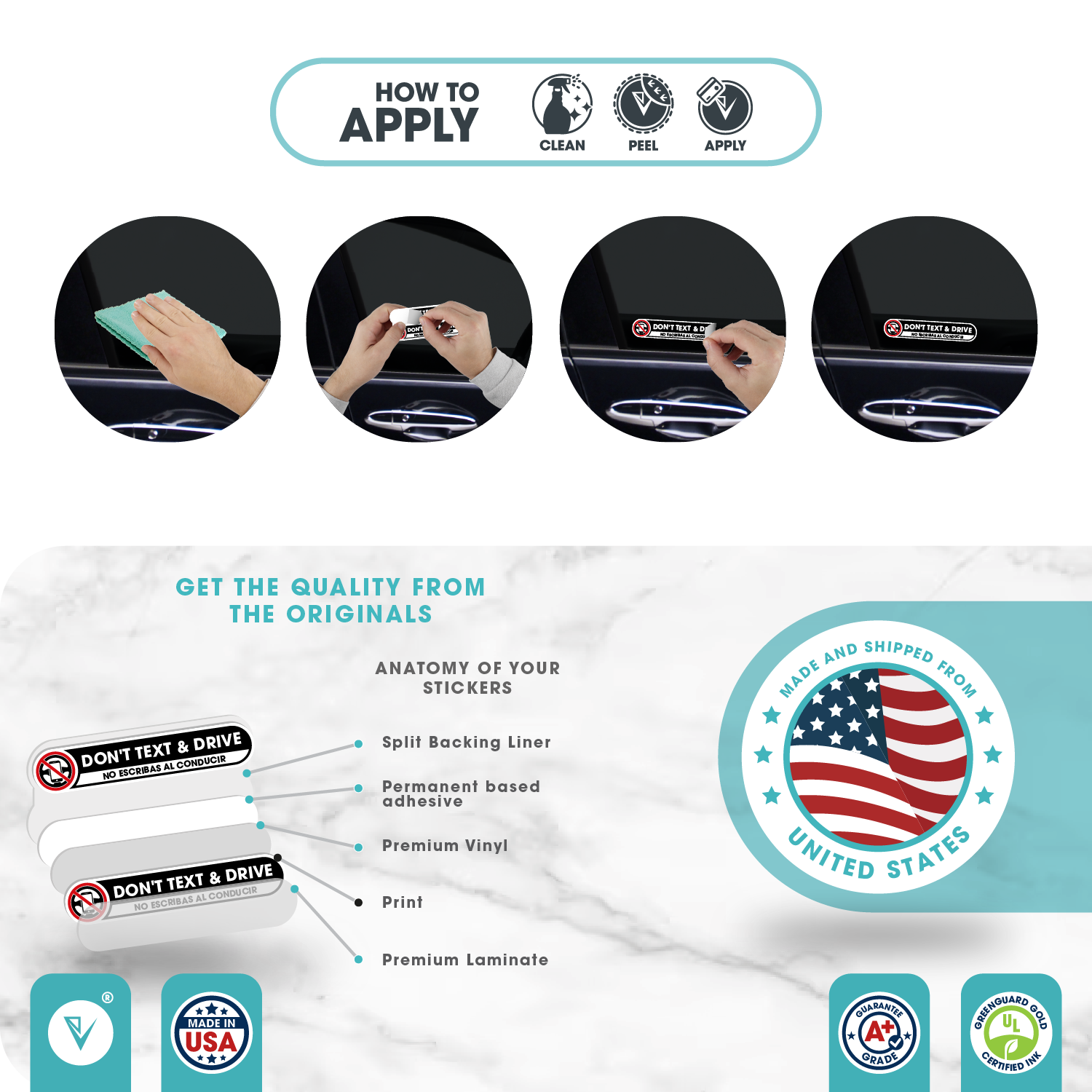 - Vinyl: High quality, waterproof, UV and weather resistant, non-toxic permanent HP vinyl.